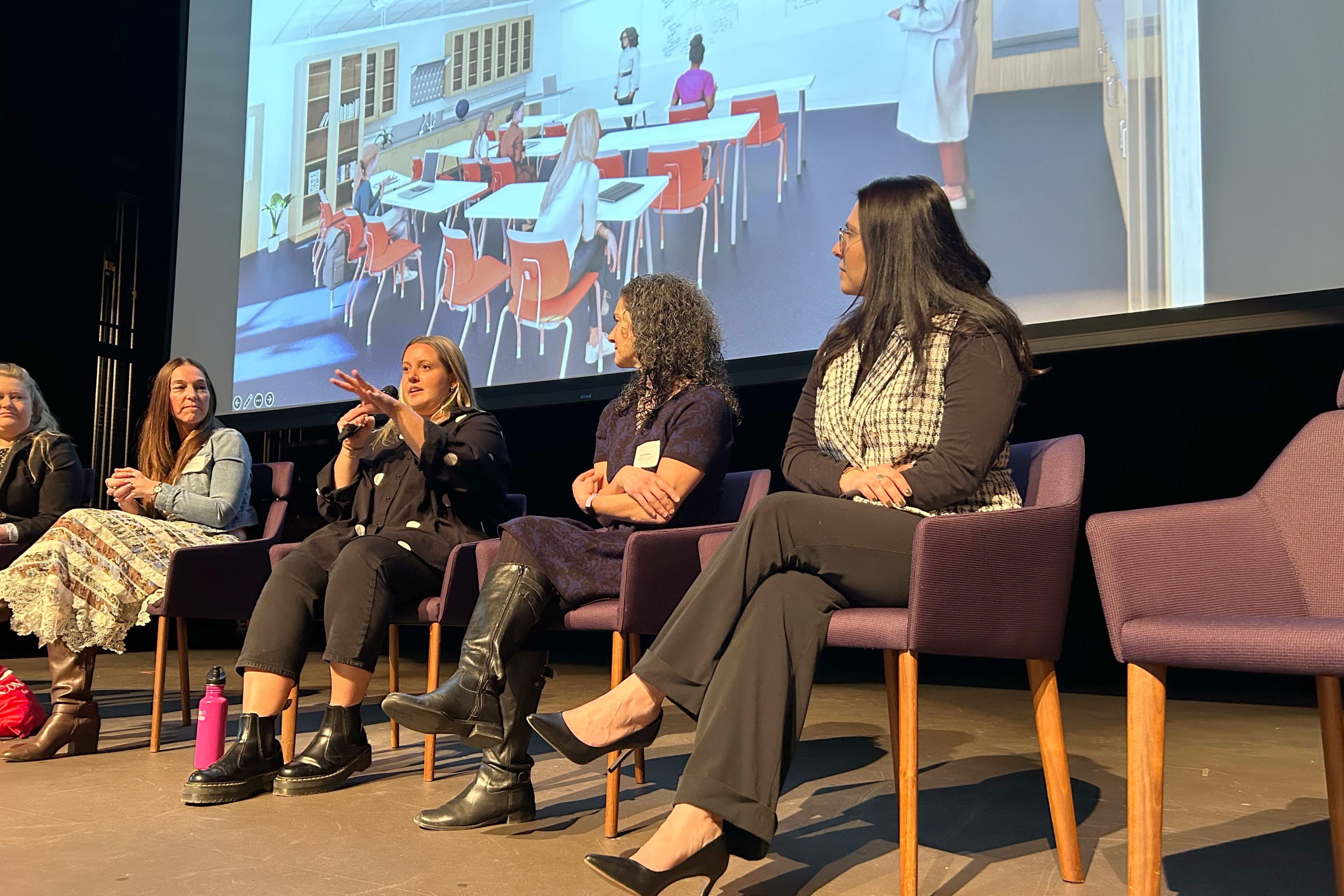As project architect and manager, Elyse spoke about leading the design team and coordinating with engineers to realize the design vision. Lisa shared renderings and video walkthroughs of the future space, sparking excitement among students. As Principal-in-Charge, she also discussed her role in guiding programming and design coordination to bring the project to life.