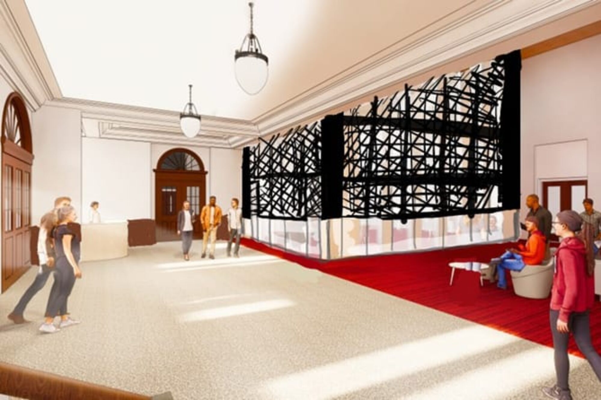 A delightful part of this project has been designing the reuse of doors from rooms occupied by Justice Ruth Bader Ginsburg when she lived in Balch Hall. In partnership with Cornell, we are creating two commemorative installations using these doors together with images of her iconic “dissent collars.” Through this salvage installation, students living in Balch Hall will engage with the history of their place in a unique and beautiful way.