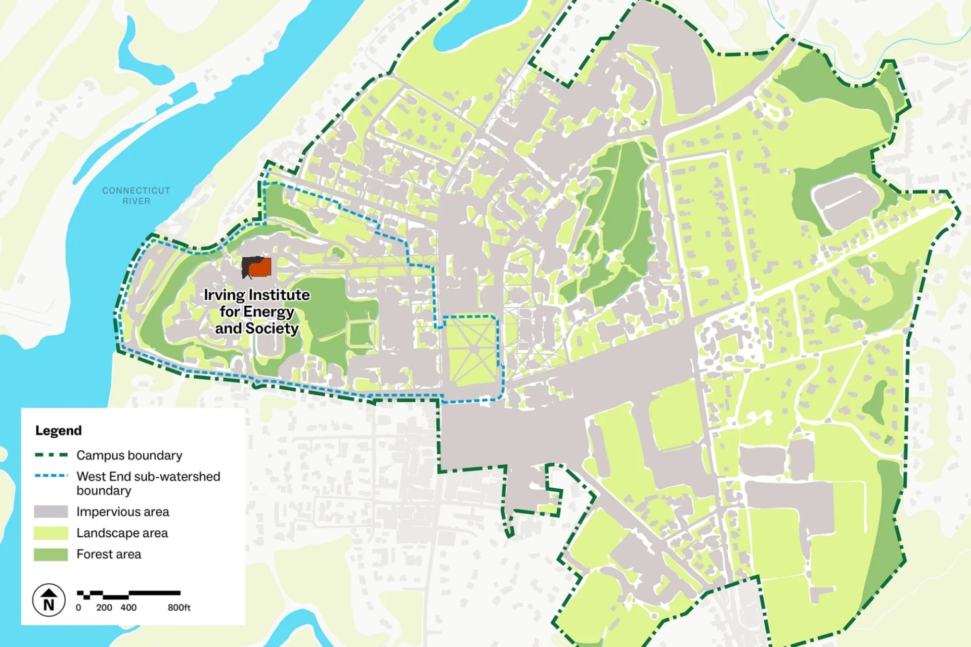 Located within Dartmouth’s highly impervious West End sub-watershed, this project plays a critical role in advancing the campus’s water balance and resilience goals.