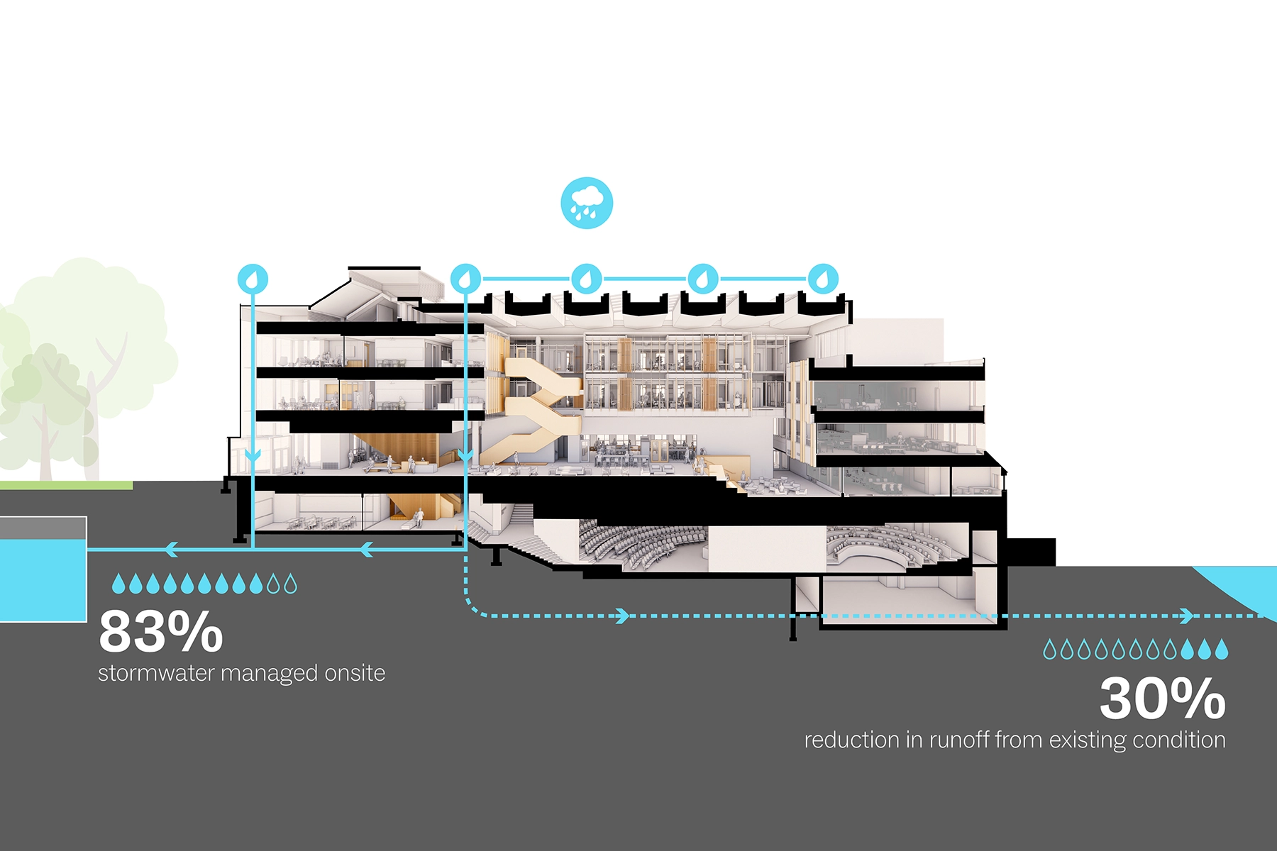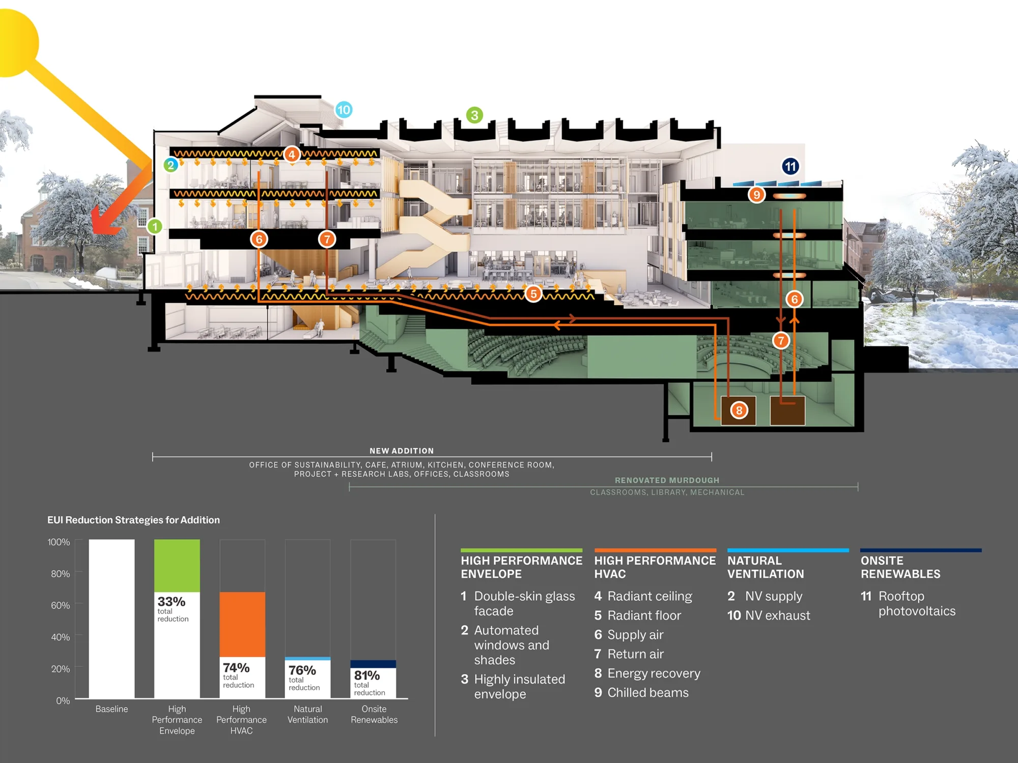 Innovative, high-performing systems are seamlessly integrated into a reinterpretation of traditional campus architecture—achieving energy goals while making the building feel as though it belongs exactly where it stands.