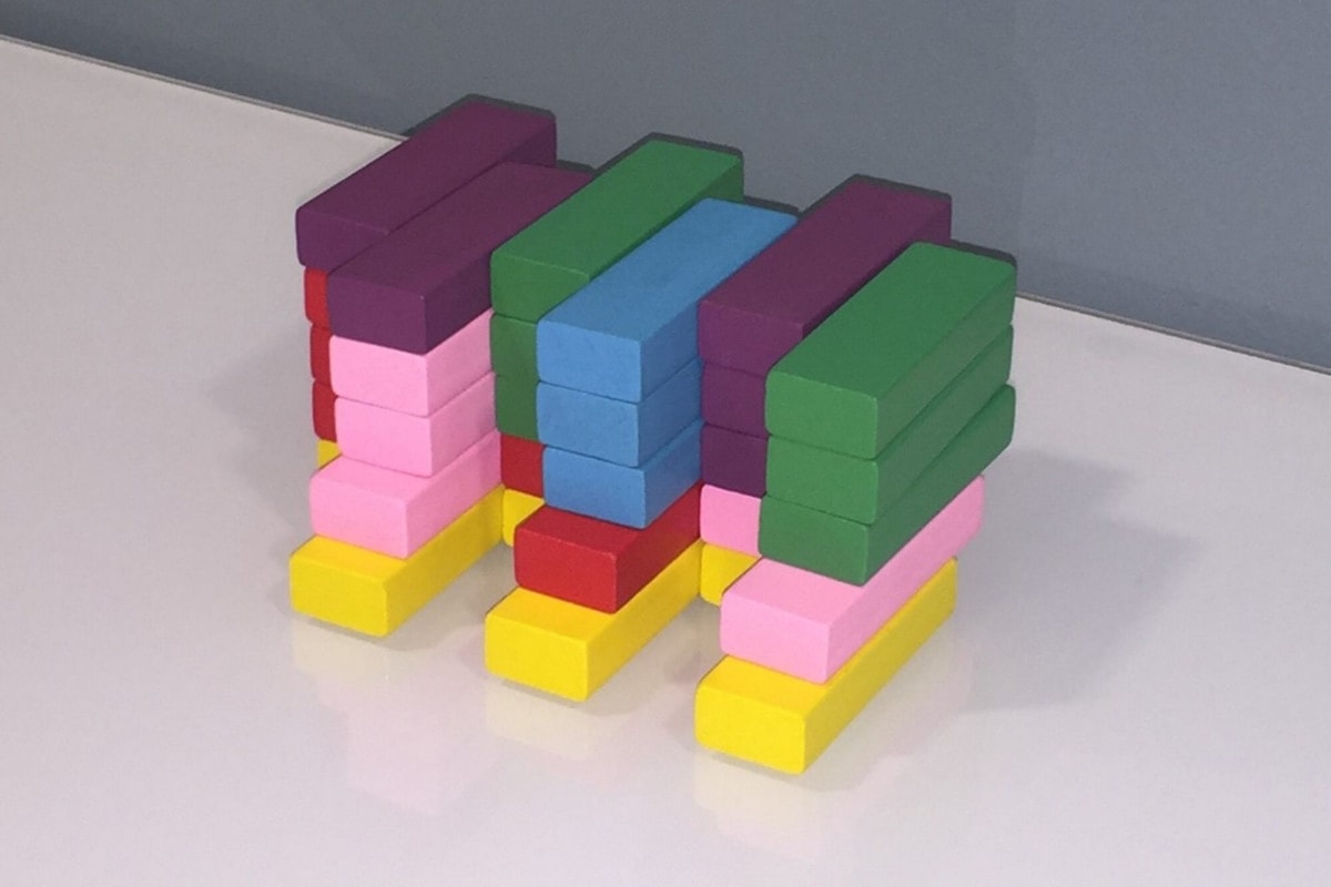 To tackle the programming complexities of this fluid spatial Tetris Game of six towers with five floors and nine groups, we introduced a simple modeling tool: colored Jenga blocks, each color representing an affinity group. (If you’re wondering: colored Jenga is available as a drinking game from Amazon; a happy surprise for the design group!). For a building of five floors and six towers, our toolkit comprised thirty blocks, each representing an average of ten or so residents.