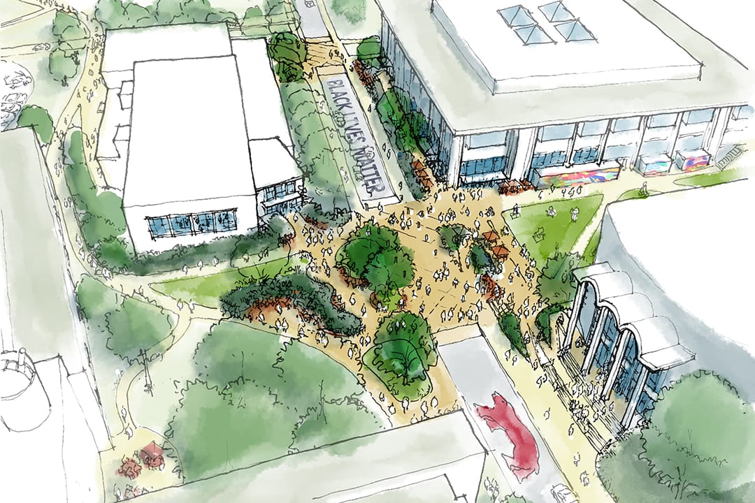 Students appreciate BSU’s many outdoor green spaces but want features that make them places to spend quality time. Our plan turns six outdoor spaces into real destinations with semi-enclosed seating, overhead lighting, expanded tree canopy, calming walks, culturally-expressive art, outdoor classrooms, and other features that support student community and personal wellness.
