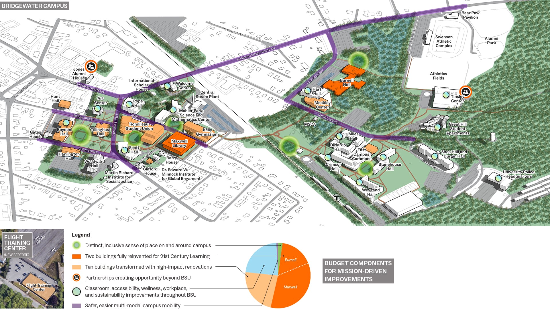 At Bridgewater State University—the largest campus in the Massachusetts State University System—a deep commitment to diversity anchors its learning culture and enrollment strategy. Our campus master plan advances that mission by eliminating the campus’s remaining accessibility barriers, creating inclusive environments that support divergent learning styles within comfortable settings, and expanding spaces for student cultural groups. Guided by an equity lens, the plan prioritizes investments that most meaningfully support those with the greatest need—ensuring every student feels a sense of belonging on campus.