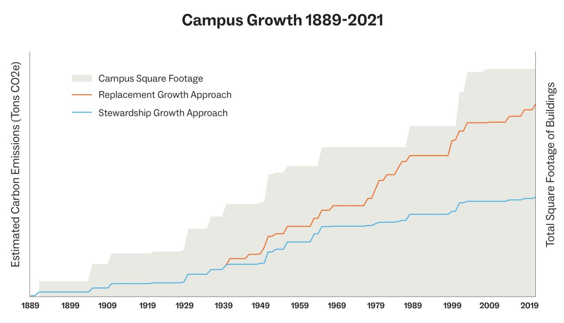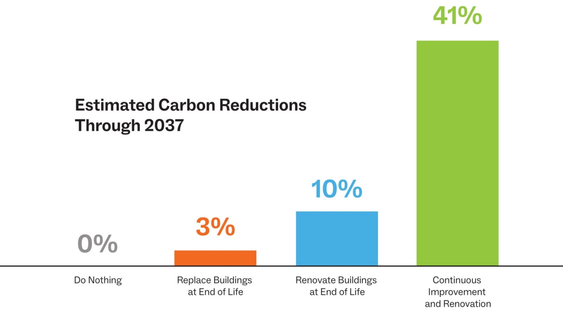 Metric tons of CO2 can be avoided by implementing energy efficiency strategies across the campus in conjunction with renovations rather than new construction.
