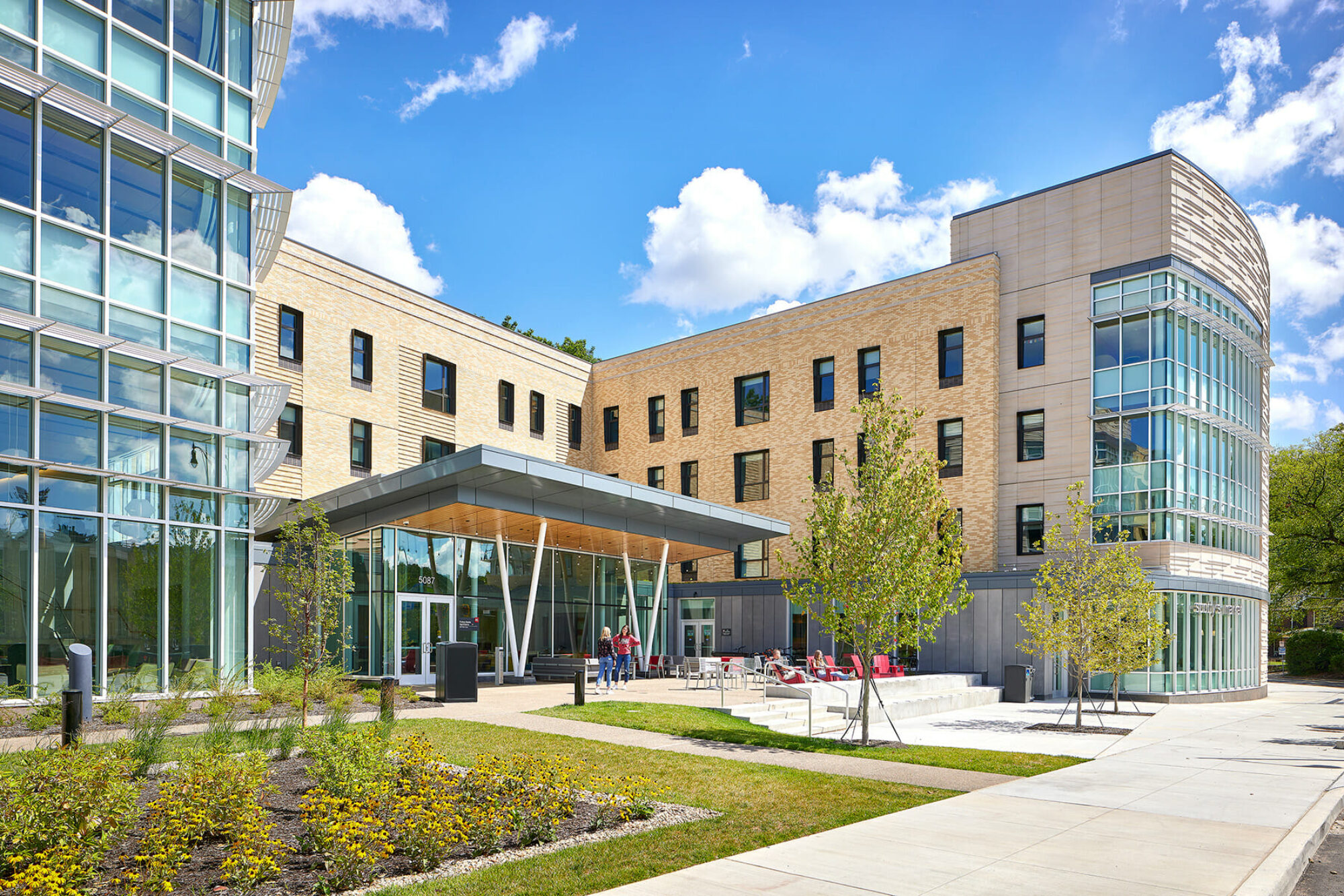 Thoughtfully positioned along a well-traveled pedestrian route, the building’s dynamic main entry offers an inviting welcome and hang-out space.