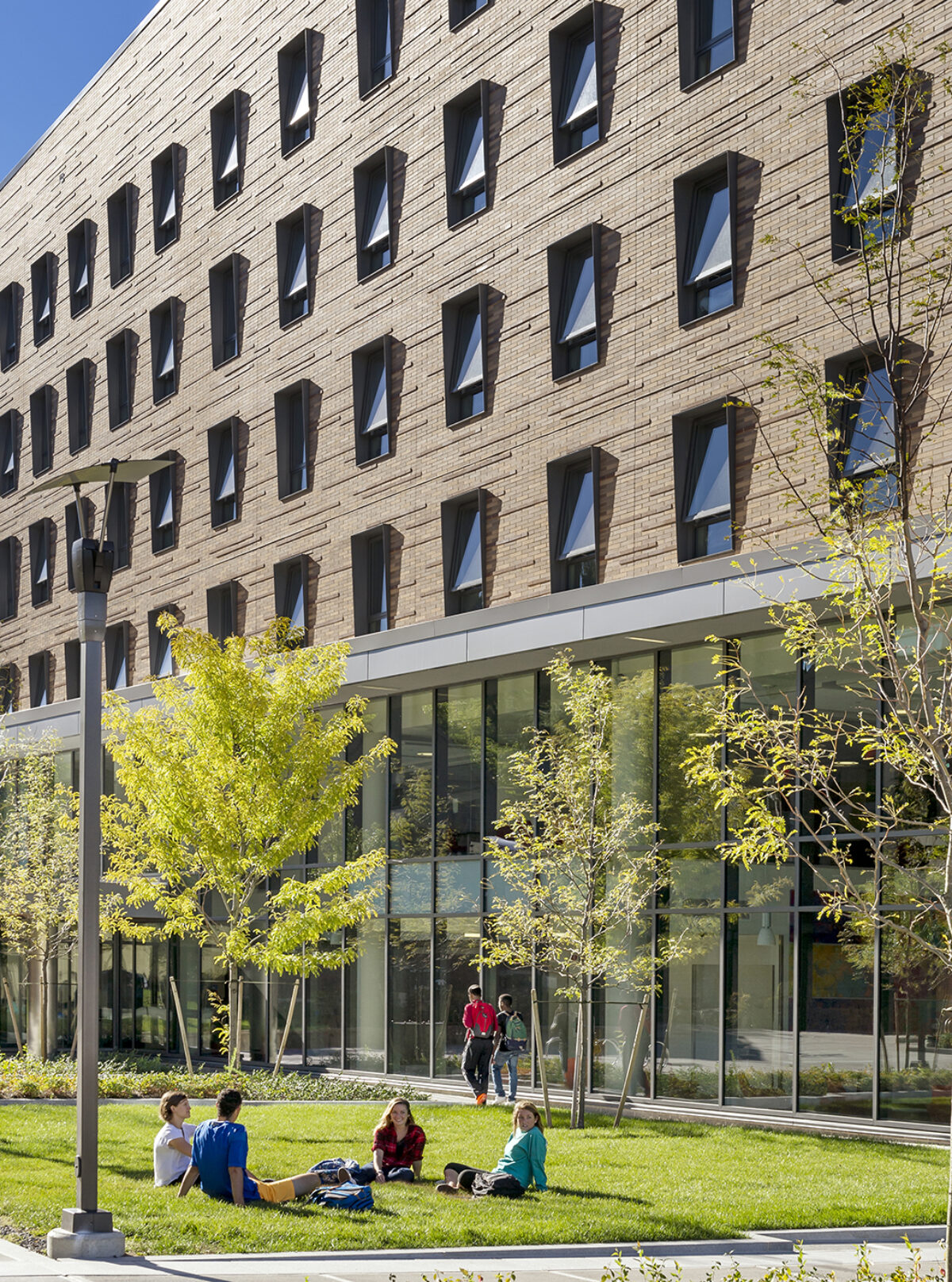 Through smart siting and massing, Sheehan Hall coalesces a residential precinct along a new public plaza and pedestrian pathway.