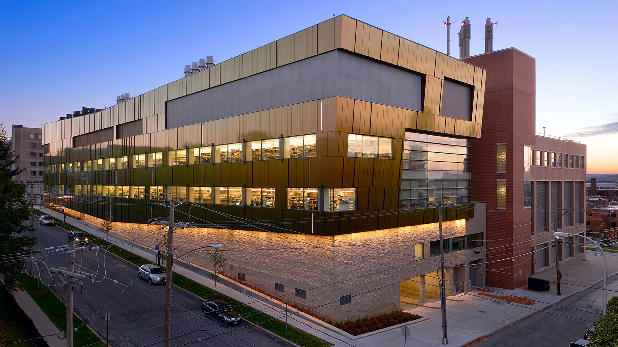 The addition is designed to brings together researchers from the new and existing buildings, creating a cohesive science community focused on disorders of the central nervous systems and the brain. Shared meeting spaces are located along the atrium, in the junction between new and old research areas. Openings between new and old, and transparency throughout the new addition, encourage visibility and participation. Clusters of faculty offices located at the ends of lab floors further support a collegial environment.